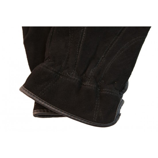 Black deerskin split, Shirred elastic wrist, Wing thumb, Foam lined